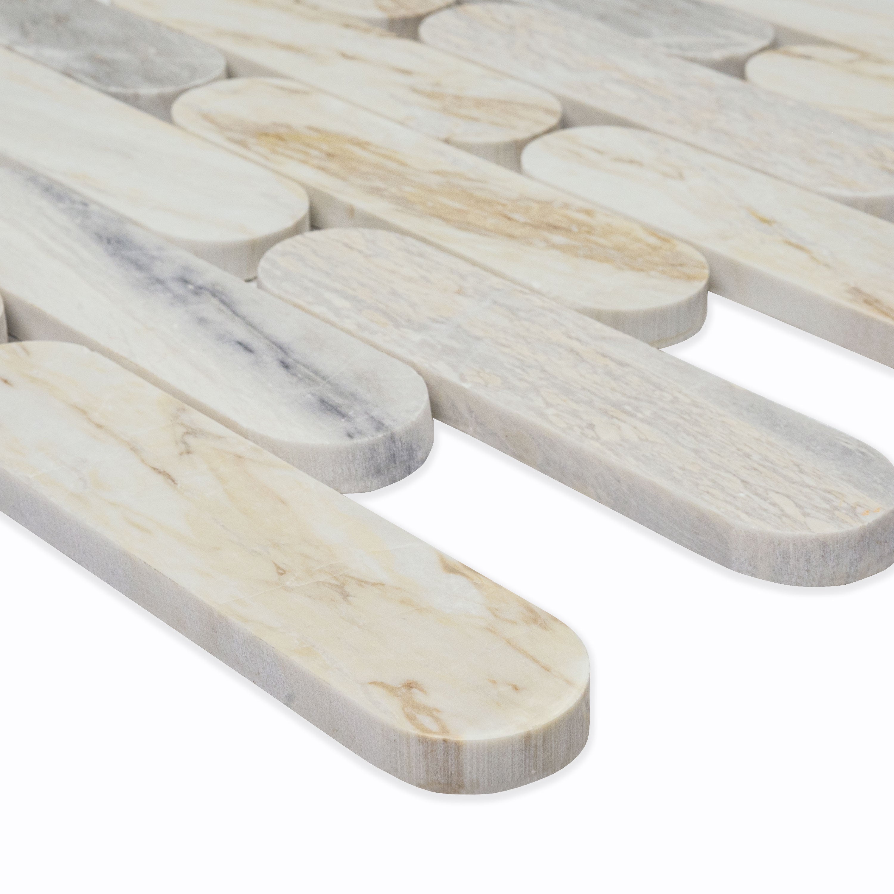 Experience the enduring elegance of the Angora Ellipse Stack Polished tile. This exquisite tile showcases stacked pieces against a warm marble background, beautifully highlighted by natural veins in each section and finished with a polished sheen that radiates luxury. Crafted for both style and ease, its mesh backing guarantees a hassle-free installation, making it an ideal option for accent walls, backsplashes, and residential floors in kitchens, bathrooms, laundry rooms, and more. Suitable for both residential and commercial settings, this versatile tile infuses any space with vibrant color and refined sophistication.