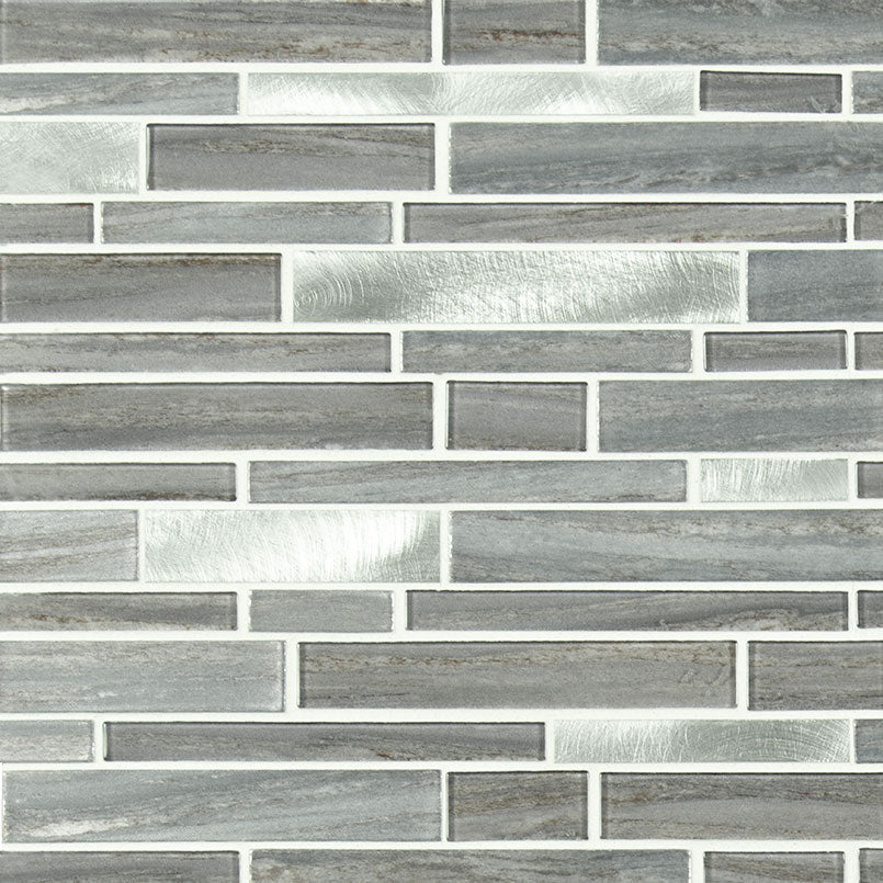 The beautiful Bimini Interlocking Metal & Glass Tile is the perfect choice for your kitchen or bathroom. The glass and metal combination make this backsplash tile shine and reflect the light in your space, and is the perfect focal point for modern design styles. The various shades of gray create interest with just enough movement throughout the pattern. Use This backsplash tile for accent walls, backsplashes, and even countertops in residential spaces.