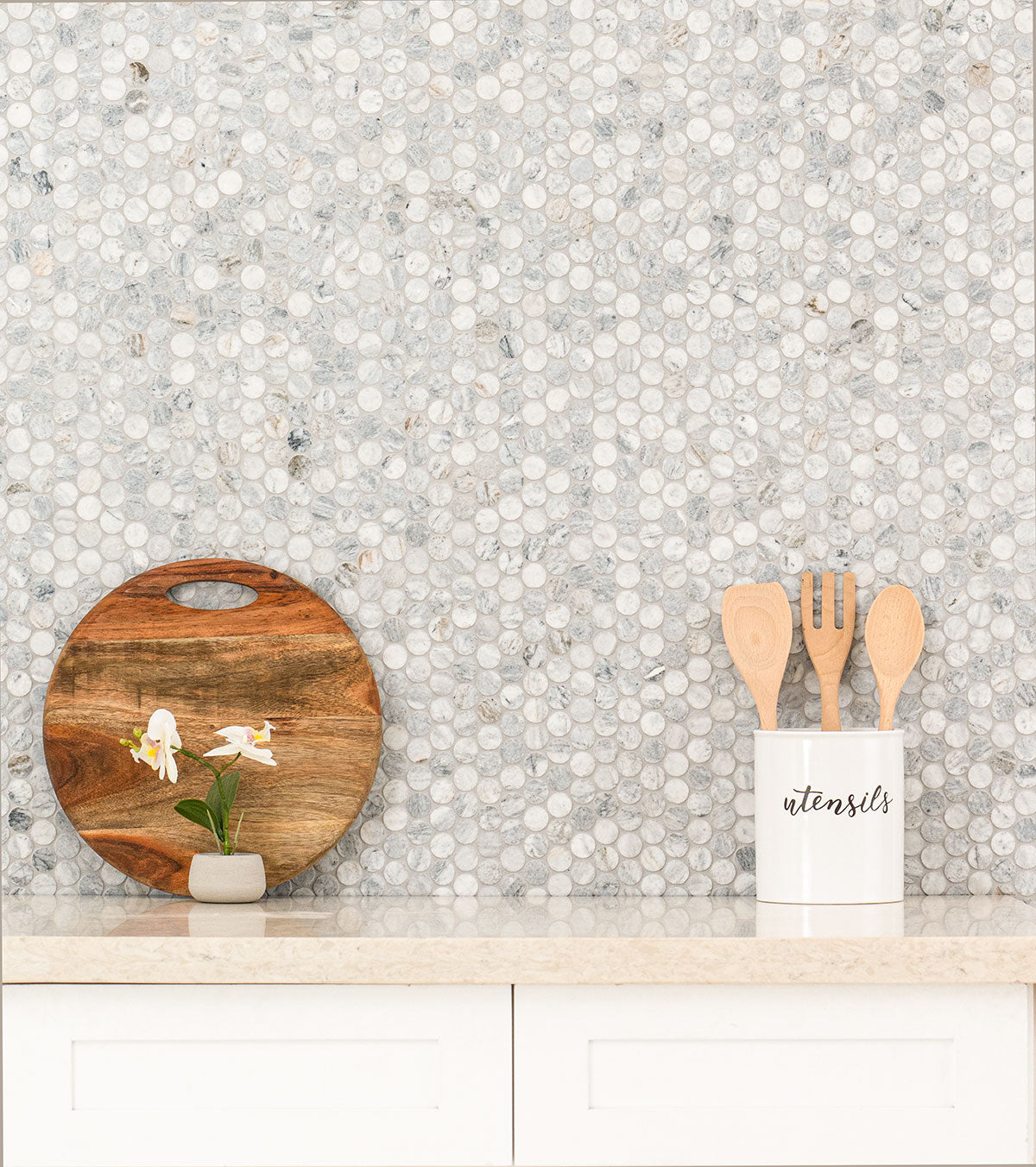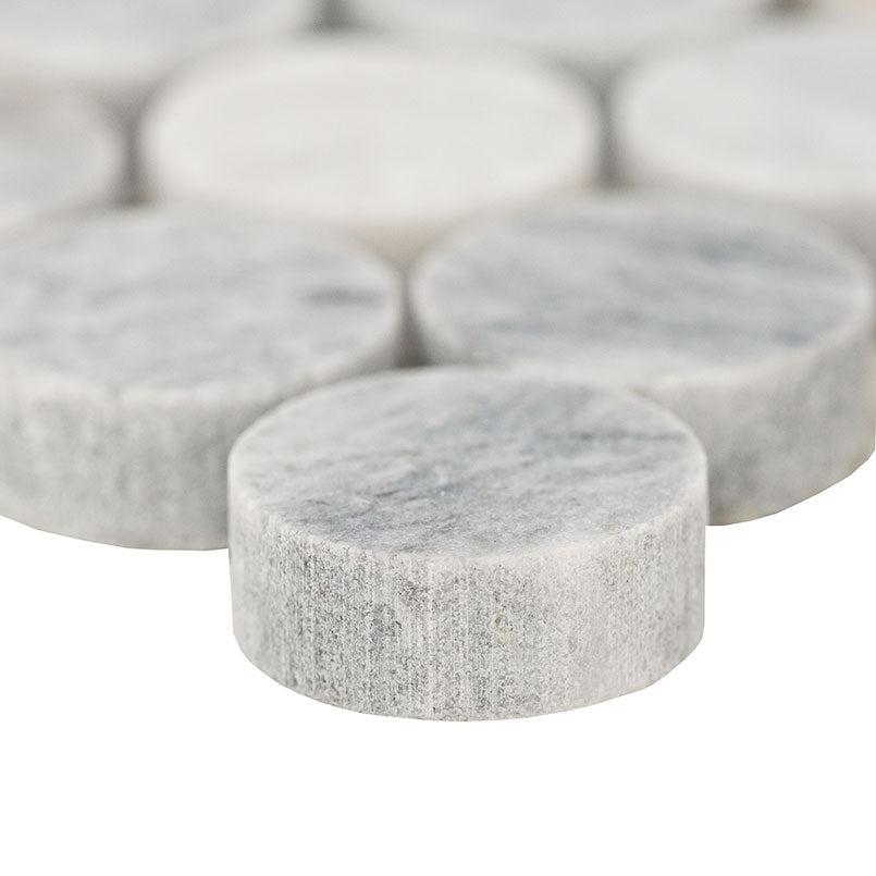 Explore the enchanting allure of Capri Blue Mosaic Tile. These mesmerizing round marble tiles showcase a stunning white and cream background adorned with vibrant blue and gold veins. With a honed finish, these charming mosaics are effortlessly enhanced by a mesh backing, facilitating easy installation. Whether you envision chic accent walls, striking backsplashes, or residential floors, these exceptional mosaic tiles epitomize elegance and sophistication. Embark on a transformative journey as these exquisite tiles grace your space with a realm of refined beauty.