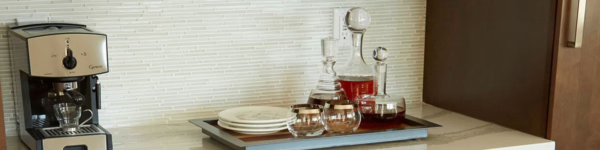 This linear glass tile isn’t your run-of-the-mill accent tile. It commands