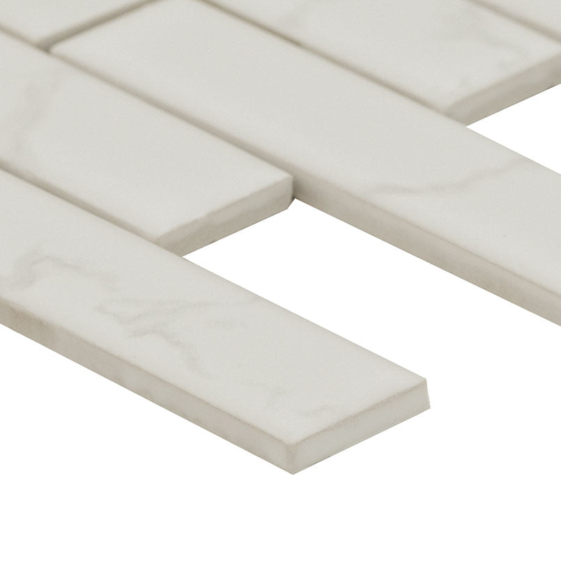 Elevate your space with Carrara Matte 1x4x6mm porcelain tile. Offering a truly authentic marble look, complete with a matte finish, you’d be forgiven if you thought it was the real thing. The long linear shape and neutral hues of this cool-white tile lend a touch of elegance to your kitchen backsplash, fireplace façade, bathroom vanity wall, and more. Not only gorgeous, but also durable and low maintenance, Carrara Matte 1x4x6MM wall tile offers endless applications throughout your home or commercial property. Tiles are strategically arranged on mesh backed sheets for simplified installation.