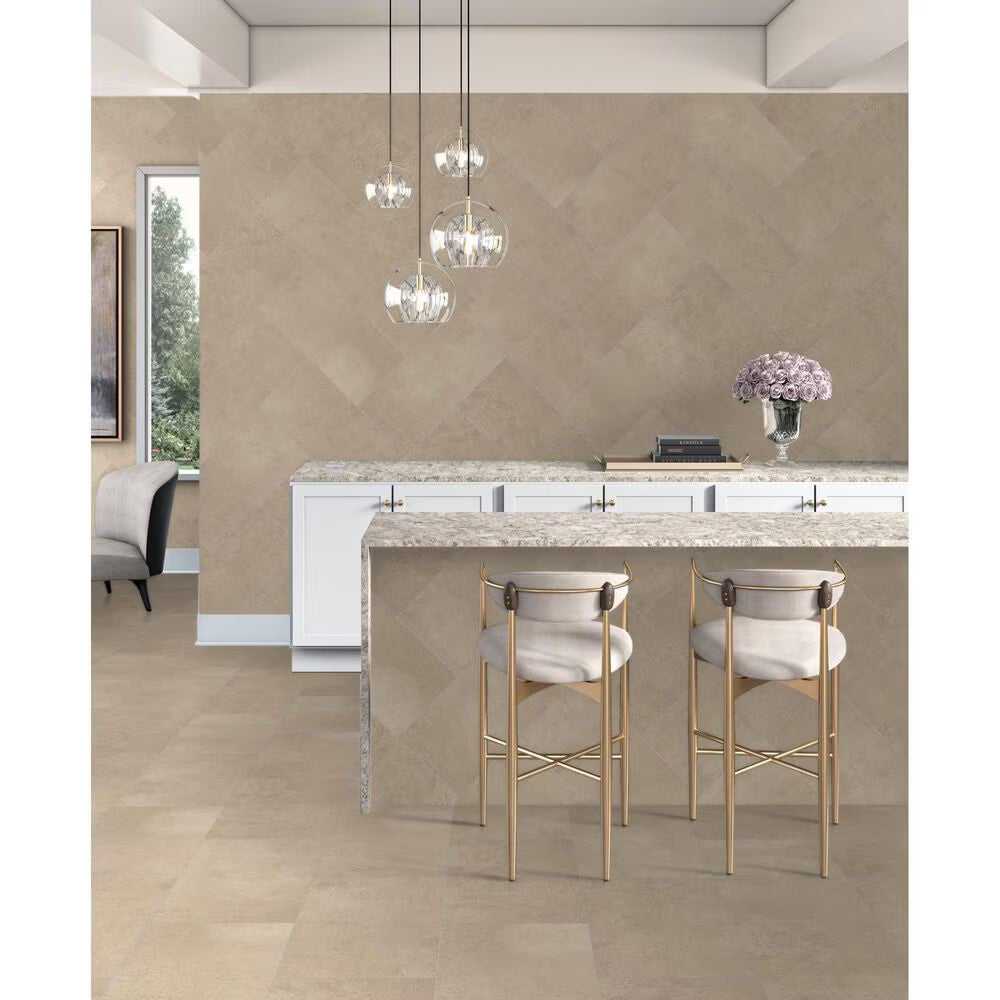 duets beautifully with floor tile. Three colors offered in a plaster graphic and