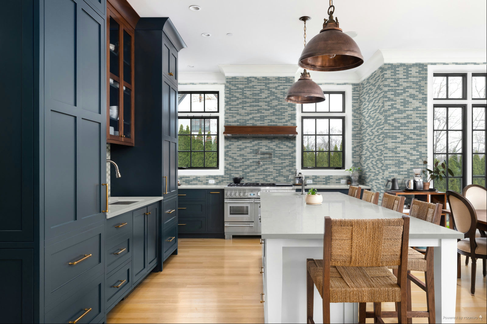 Colosseo Azul Brick Pattern tile features a soothing trio of blue, gray, and cream tones. A fresh take on a classic pattern, this mini stone glass blend tile adds interest to backsplash, vanity walls, shower surrounds, countertops, and more in residential and light commercial settings. Give your kitchen, bath, living room or other space a touch of affordable luxury with this Greenguard Indoor Air Quality Certified® tile.