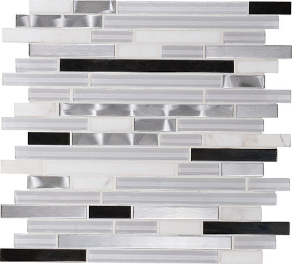 xEnhance your interiors with the stylish Decorative Endeavors™ Stone, Glass & Metal Mosaics, designed to bring depth, texture, and elegance to any space. Featuring a modern linear pattern, this mosaic blends natural stone, shimmering glass, and sleek metal for a unique mixed-media look. Perfect for backsplashes, accent walls, bathrooms, kitchens, and even outdoor applications, it offers unmatched versatility. Each 13x12 mesh-mounted sheet comes with interlocking edges for easy installation and a seamless finish. Ideal for transitional and contemporary designs, this mosaic delivers subtle metallic luster and lasting sophistication.