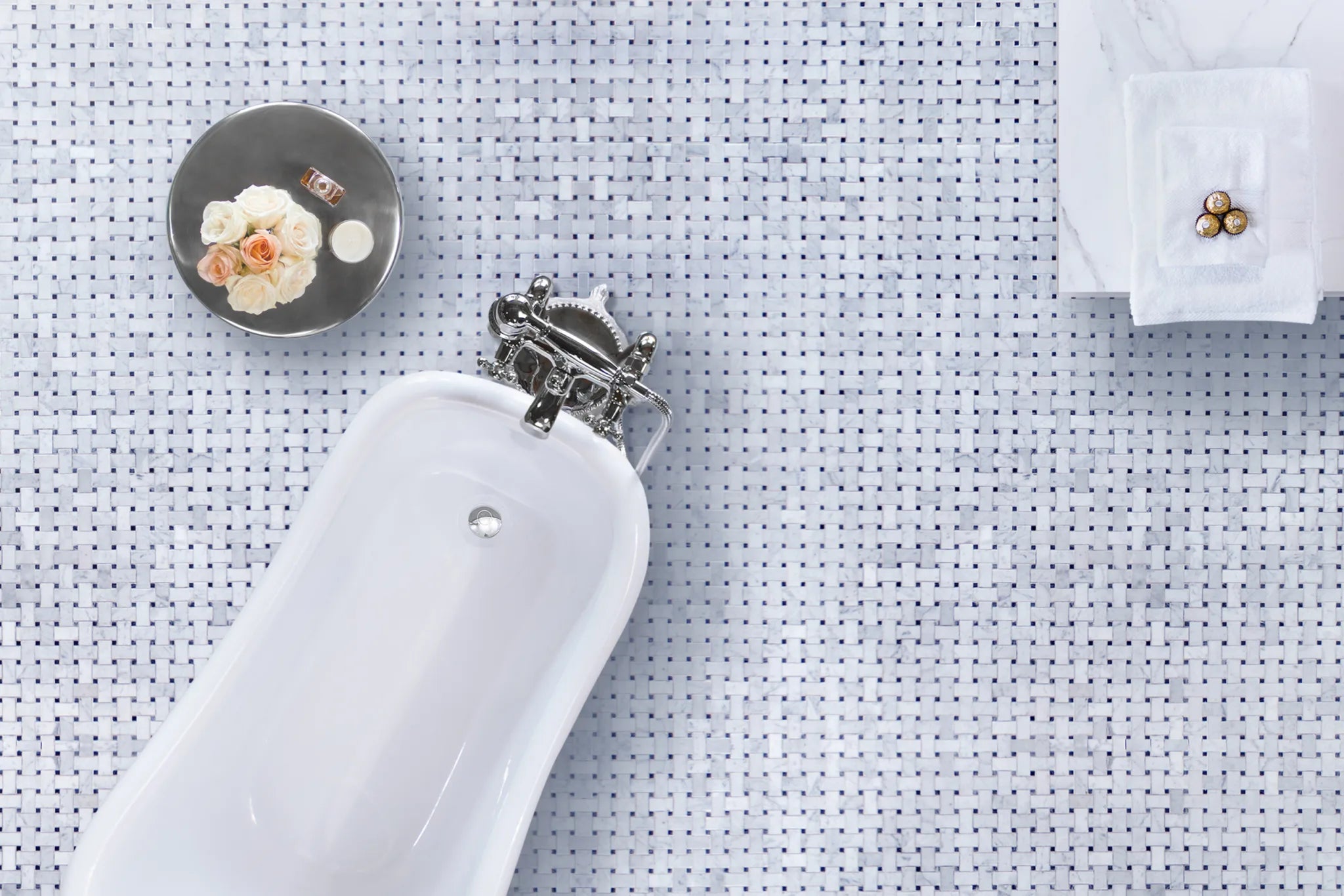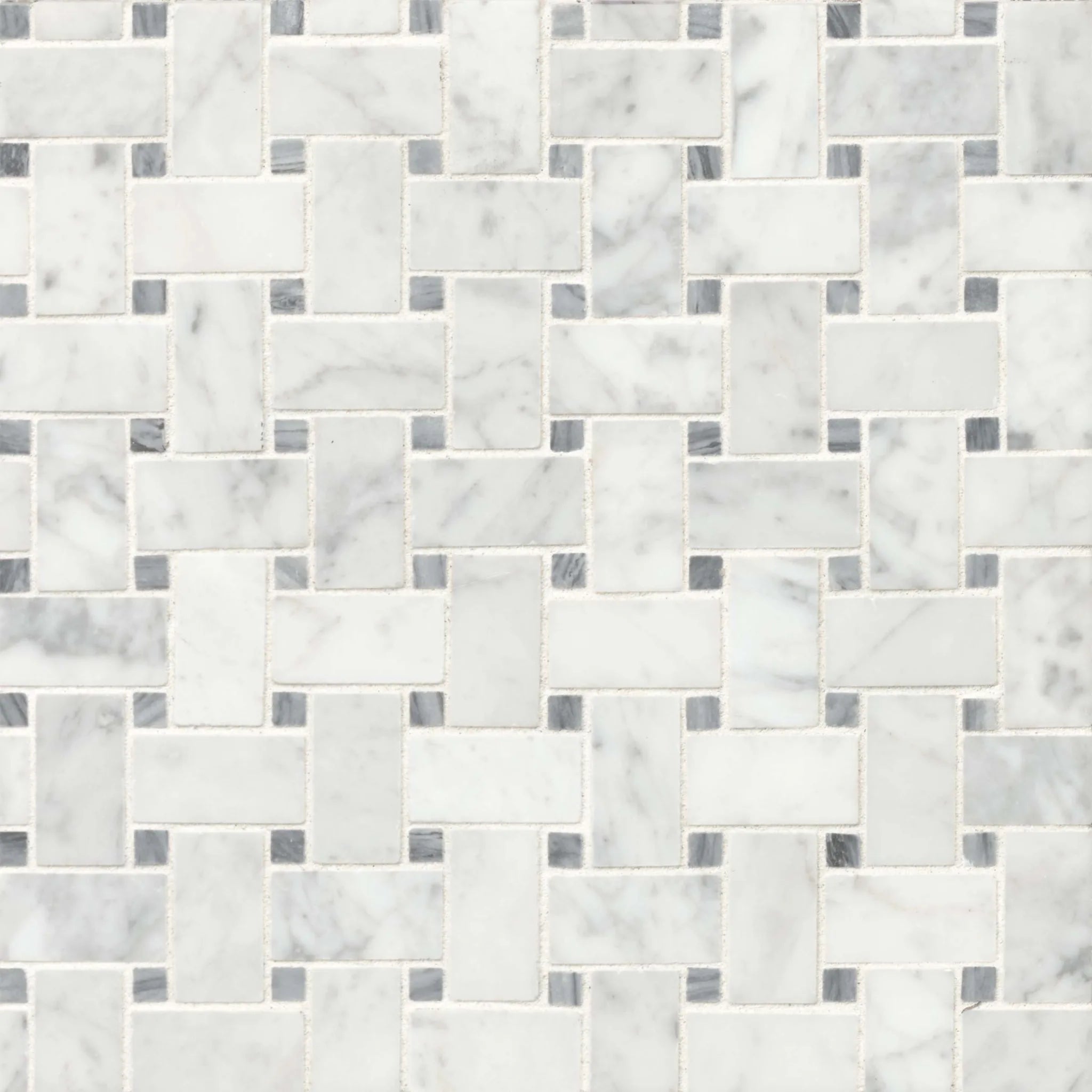 This classic mosaic that's popularly used on bathroom floors and kitchen backsplashes, is available in eight beautiful natural stone blends. They range from the iconic black and white, to traditional creams and beiges, to modern grey and taupe color tones. With so many combinations available, it's easy to coordinate a basketweave mosaic with your stone of choice.
