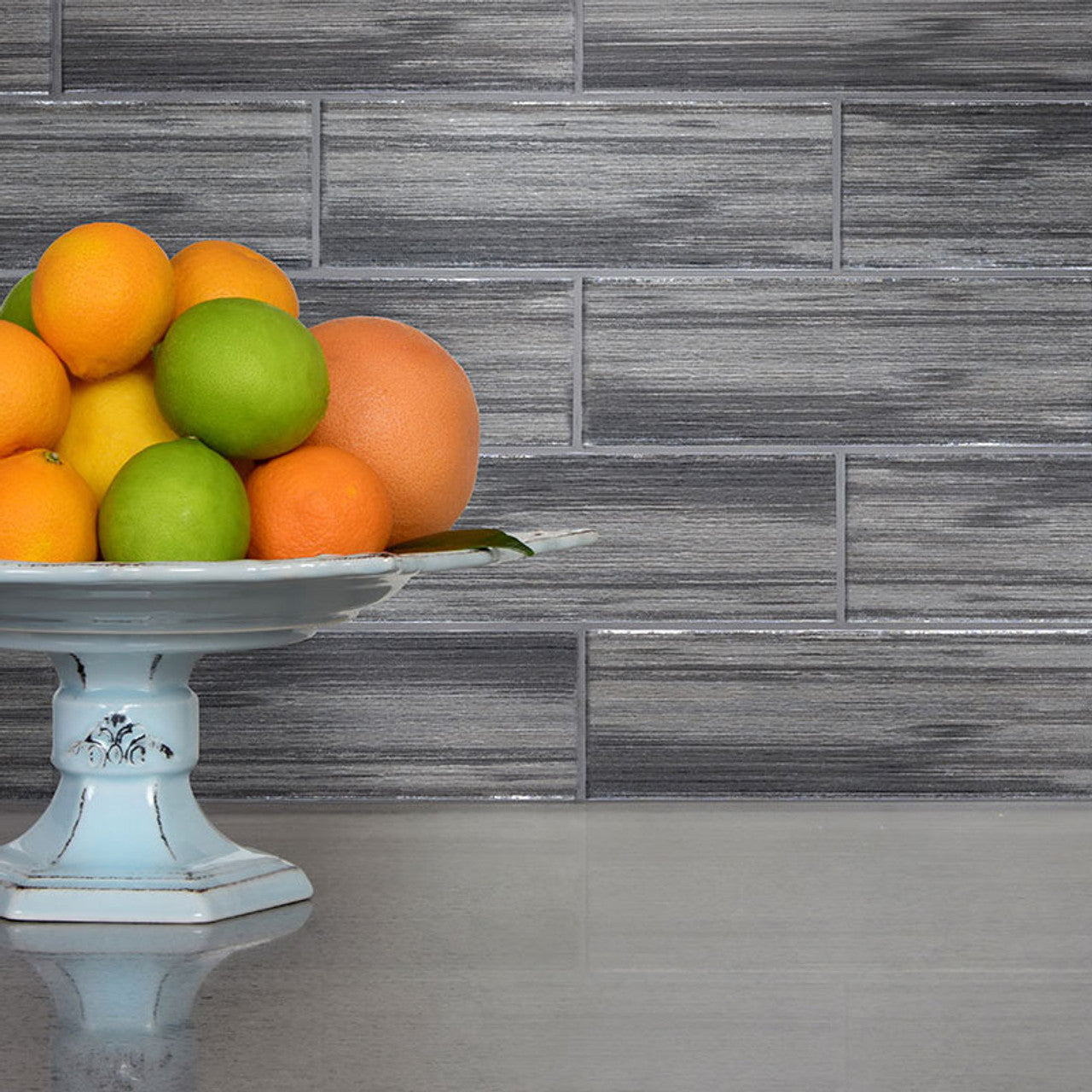 xGlacier Black 3x9 Glass Tile is a modern wall tile with streaks of medium gray, dark gray, and black tones that create a graphic impact. The striking tiles are Greenguard Indoor Air Quality Certified and will spruce up any residential or commercial space where a dark backsplash or feature wall is desired.