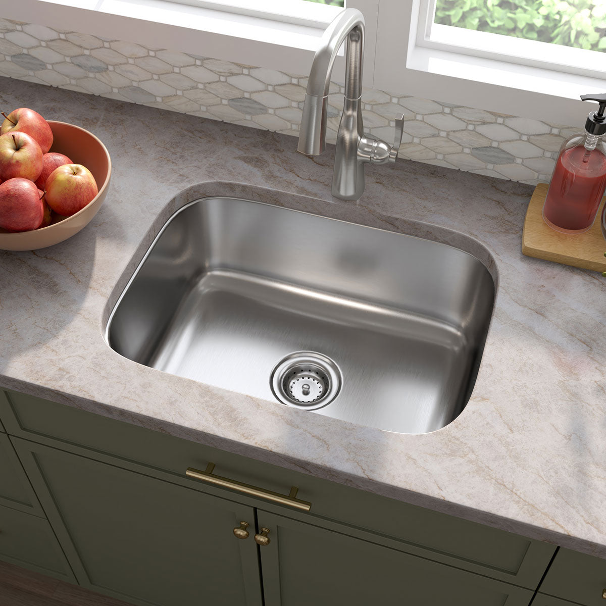 This rectangular single bowl 18-gauge stainless steel undermount sink is the perfect choice for islands, bar areas, laundries, and outdoor kitchens. Sized to fit in nearly any space, its rounded rectangular shape and generous 8” deep basin accommodates a range of cookware and dishes with ease. With sound shielding pads that make for a quiet washing experience to a beautiful brushed satin finish that minimizes water spots and small scratches, this sink works overtime to ensure your satisfaction. Strainer included and stainless-steel grid available.