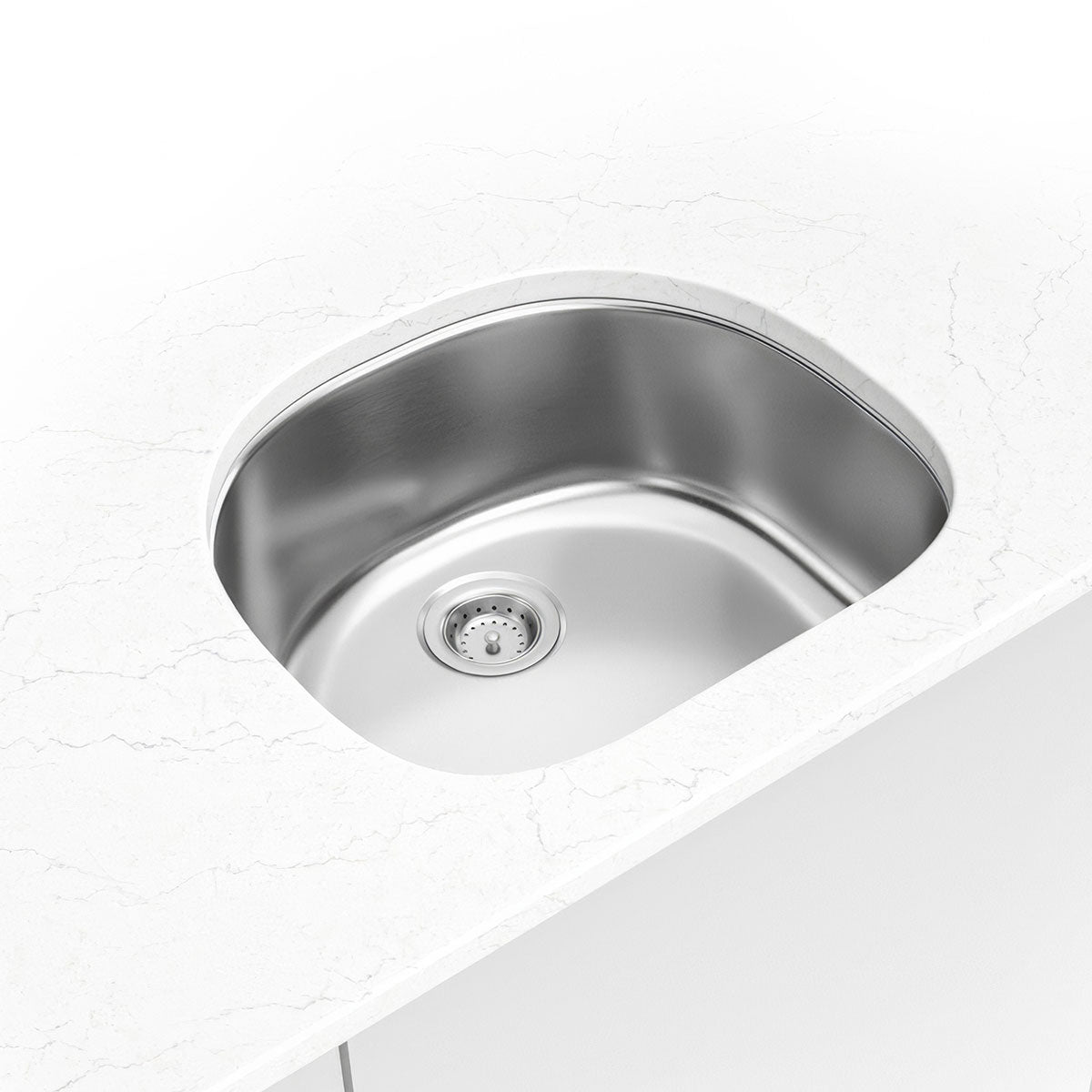 This single bowl 18-gauge stainless steel undermount sink with rounded corners is the perfect choice for islands, bar areas, laundries, and outdoor kitchens. Sized to fit in nearly any space, its generous 8” deep basin is purposefully practical. With sound shielding pads that make for a quiet washing experience to a beautiful brushed satin finish that minimizes water spots and small scratches, this sink works overtime to bring you years of satisfaction. Strainer included and stainless-steel grid available.