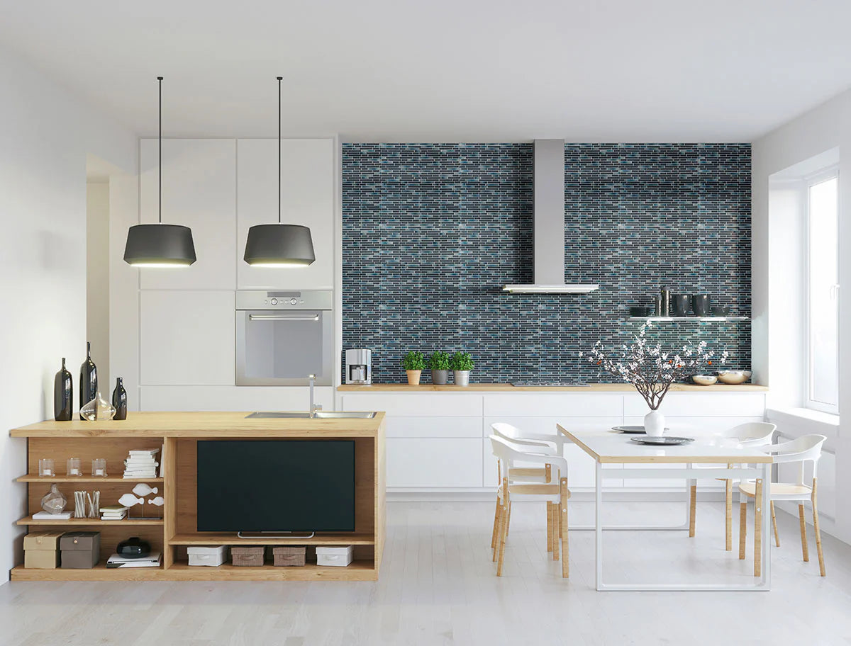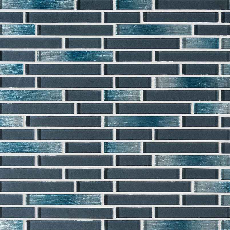 Harbor Celeste 6mm Interlocking Glass Mosaic Tile offers a blend of blue crystallized glass and stone, balancing traditional and contemporary styles. Durable and low-maintenance, these tiles are versatile, perfect for residential or light commercial spaces. The long, linear design visually expands small areas, while the glass reflects light to enhance brightness. Ideal for kitchen backsplashes, countertops, accent walls, and shower walls, this tile adds distinctive character wherever it's installed. Mounted on mesh-backed sheets, installation is simplified for a professional finish.