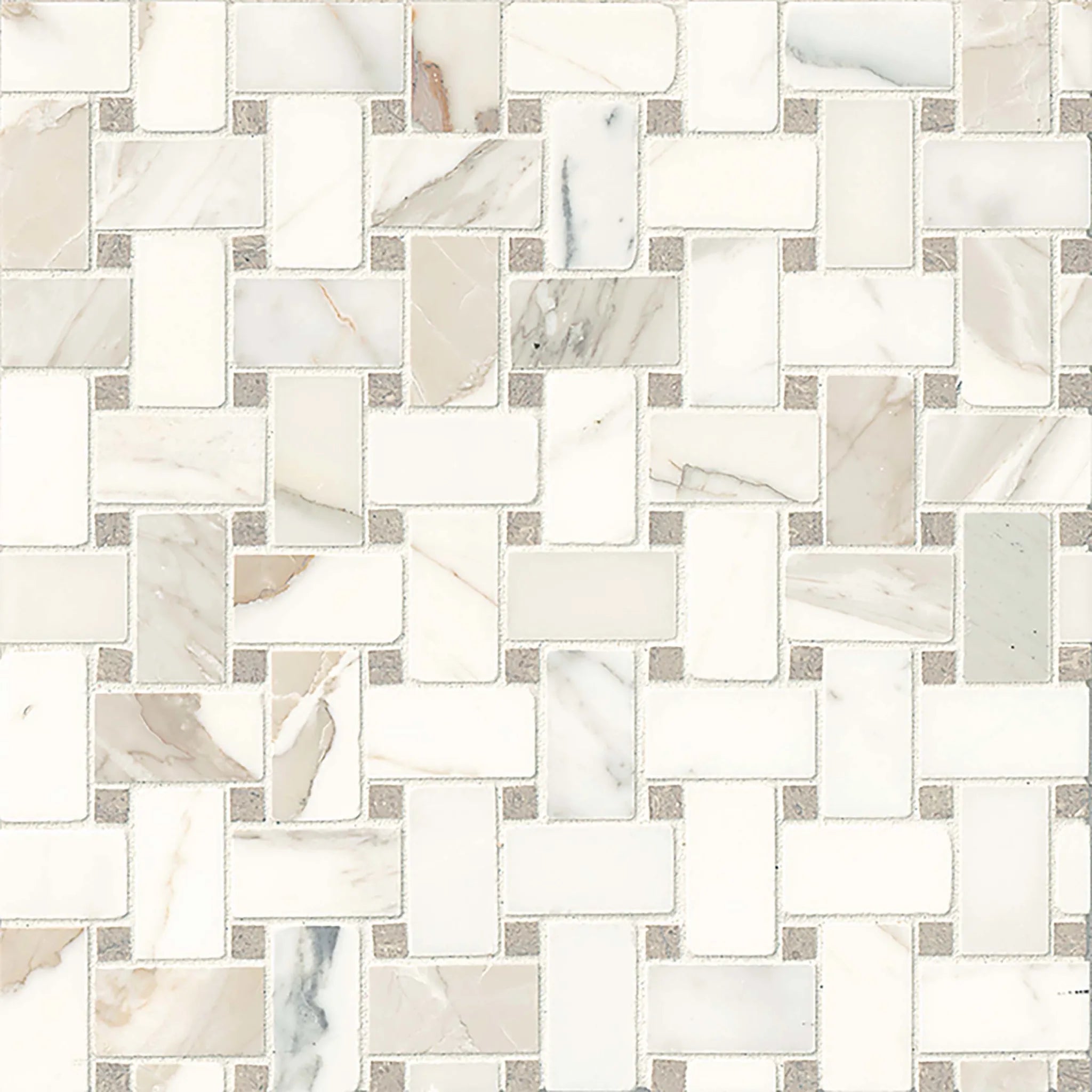 This classic mosaic that's popularly used on bathroom floors and kitchen backsplashes, is available in eight beautiful natural stone blends. They range from the iconic black and white, to traditional creams and beiges, to modern grey and taupe color tones. With so many combinations available, it's easy to coordinate a basketweave mosaic with your stone of choice.