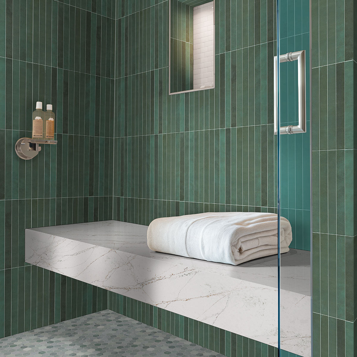 xInspired by nature, an array of calming green hues combine with classic yet modern geometric shapes together to create Icelandic Green 2” Hexagon Mosaic Tile. Green is a color that complements almost any color or style, and the hexagon shape is timeless. This marble hexagon tile features a polished finish that will elevate the look of any space in both commercial and residential applications. Use this backsplash tile to create gorgeous shower surrounds, accent walls, kitchen backsplashes, and even flooring in residen