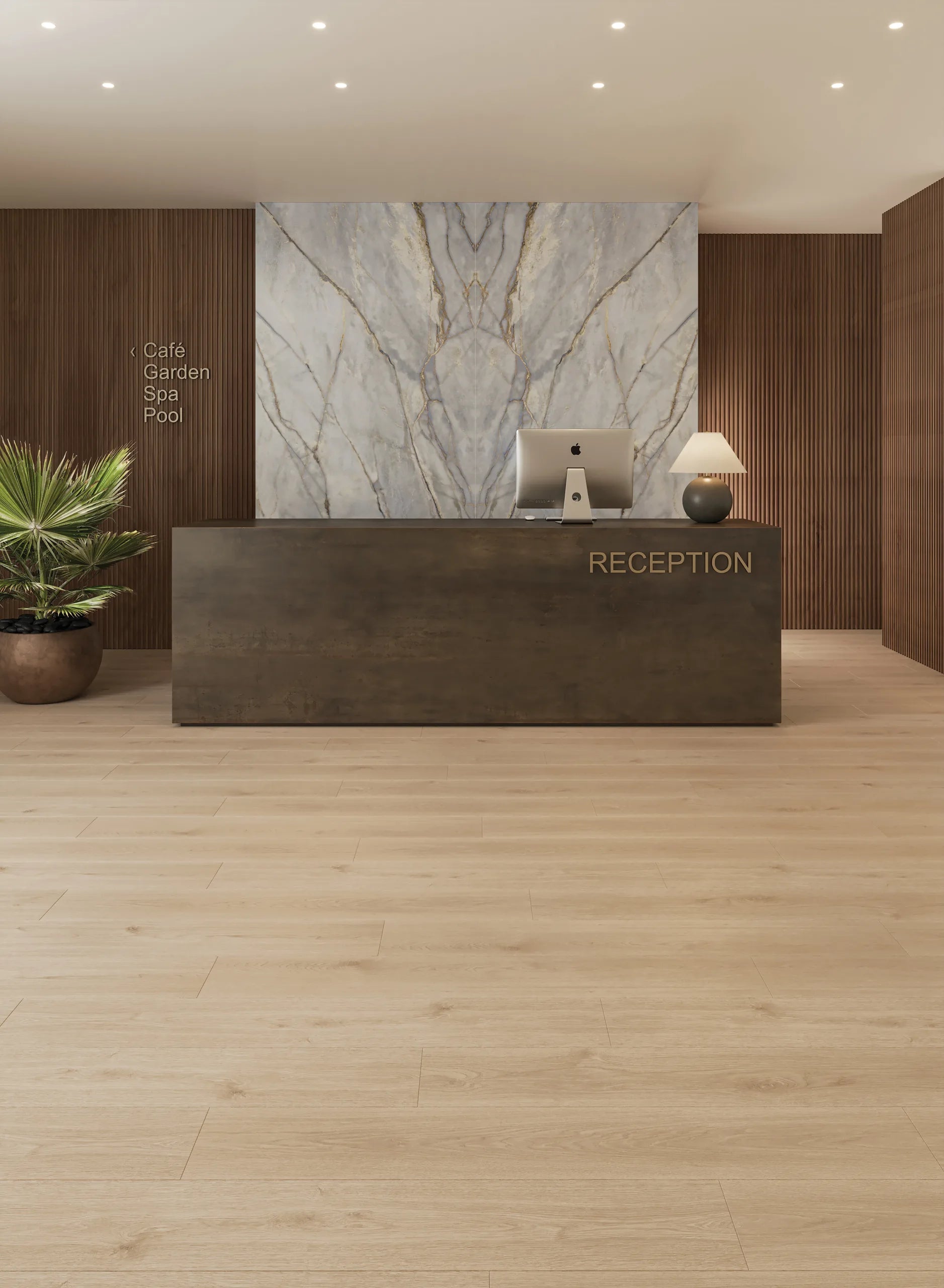 La Jolla reflects the coastal charm with its natural wood tones and realistic EIR texture, offering a tranquil atmosphere. Designed with painted beveled edges and seven versatile tile shades, it brings a sophisticated, timeless look to any setting. Rated AC5 for heavy commercial use, it’s highly durable and ideal for demanding spaces.