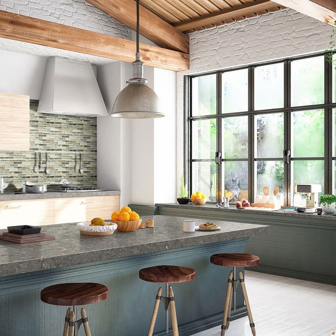 Lazio Brick is a contemporary glass tile with gorgeous shading of creams, browns, and a touch of green. This statement wood-look wall tile can be run vertically or horizontally and works wonders on backsplash, vanity walls, shower surrounds, fireplace facades, and countertops. Easy-care and durable, too-add color and interest to your residential or light commercial project with this wood-look glass tile. This tile is Greenguard Indoor Air Quality Certified and comes mounted on mesh-backed sheets for a simplified installation and professional finish.