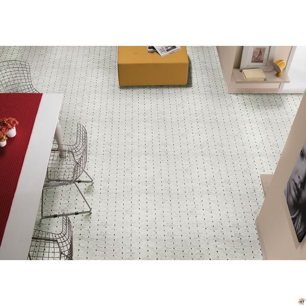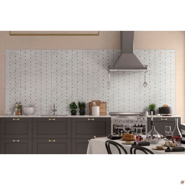 Marbella Diamond Tile features classic white marble accented by touches of gray marble in a unique elongated diamond pattern. Its understated elegance makes it ideal as patterned wall tiles, geometric floor tiles, and backsplashes in any room. With its neutral color and delicate design, Marbella Diamond complements a wide variety of color schemes and decorative choices. This backsplash tile is Greenguard Indoor Air Quality Certified and come mounted on mesh-backed sheets for simplified installation and a professional finish.