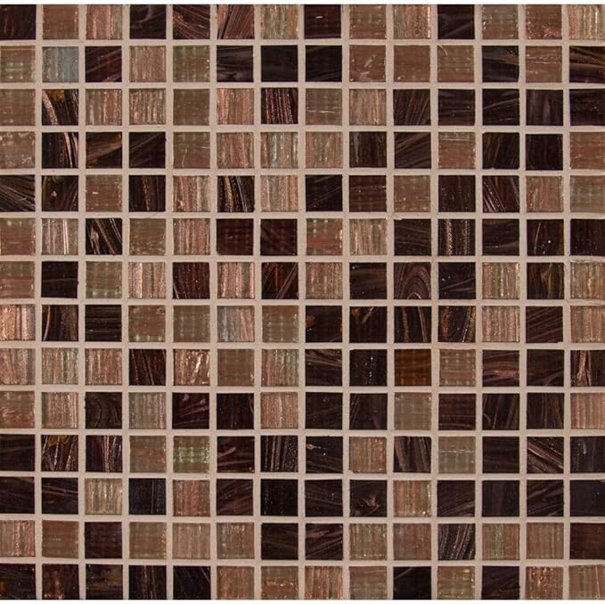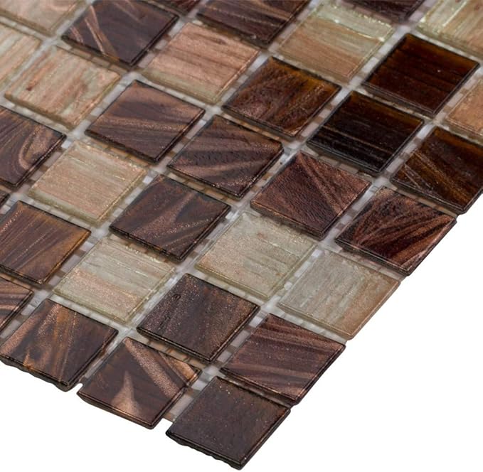 Treasure Trail Iridescent Glass Mosaic tiles are backed with mesh and available in 12x12 sheets in rich shades of iridescent tans and browns. Recommended uses include walls and backsplashes in both residential and commercial properties.