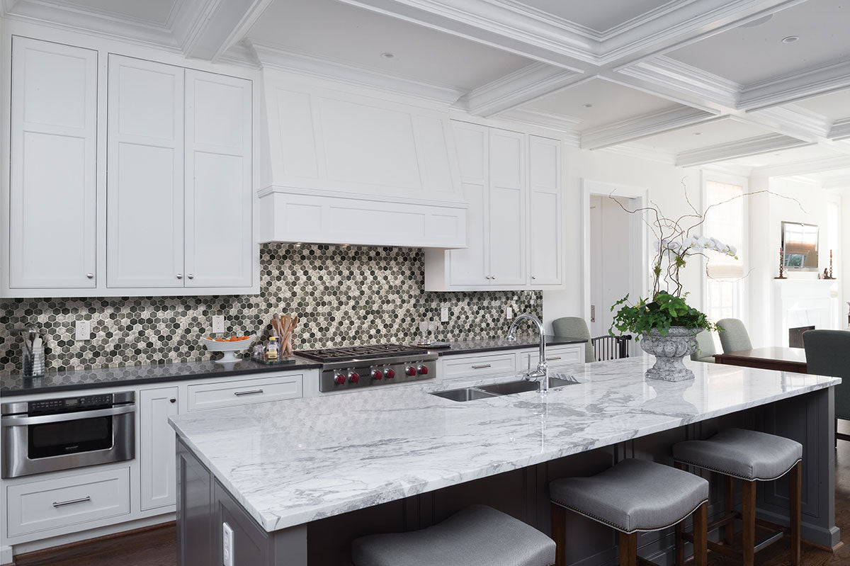 Urban Tapestry Hexagon Mosaic Tile is a 2-inch recycled glass mosaic backsplash tile that strikes the perfect balance between traditional and contemporary with neutral colorways of soft gray, creamy white, and deep charcoal. Durable, low-maintenance, and highly versatile, this mosaic gives residential and light commercial spaces a touch of visual intrigue. It’s perfectly suited for a kitchen backsplash, but why stop there? You can also use it on countertops, accent walls, shower walls, or to give a nook distinct personality. This tile is Greenguard Indoor Air Quality Certified® and comes mounted on mesh-backed sheets for a simplified installation and professional finish.