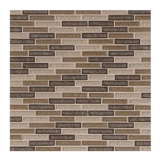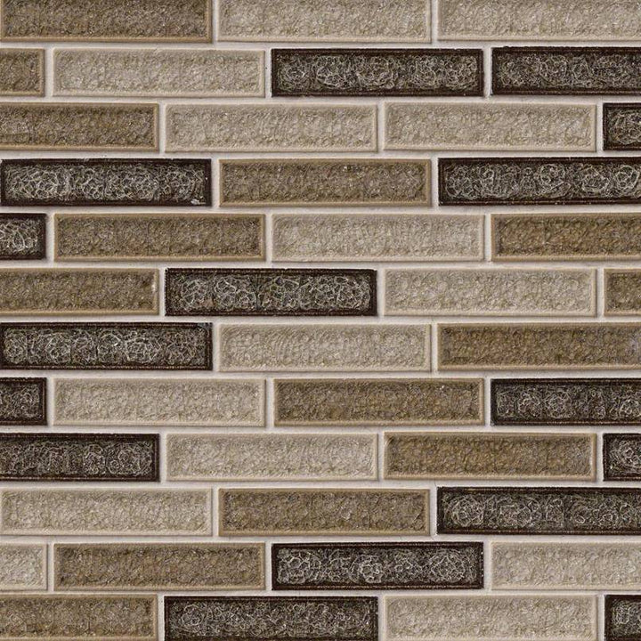 Pale almond accented with taupe, warm chocolate tones accented with ivory, and deep sable accented with alabaster meet in our Venetian Cafe Tile mosaic design. This crackled glass backsplash tile is an unparalleled choice if you’re looking for the perfectly appealing combination of high contrast and earth tones for your walls, floors, or countertops.