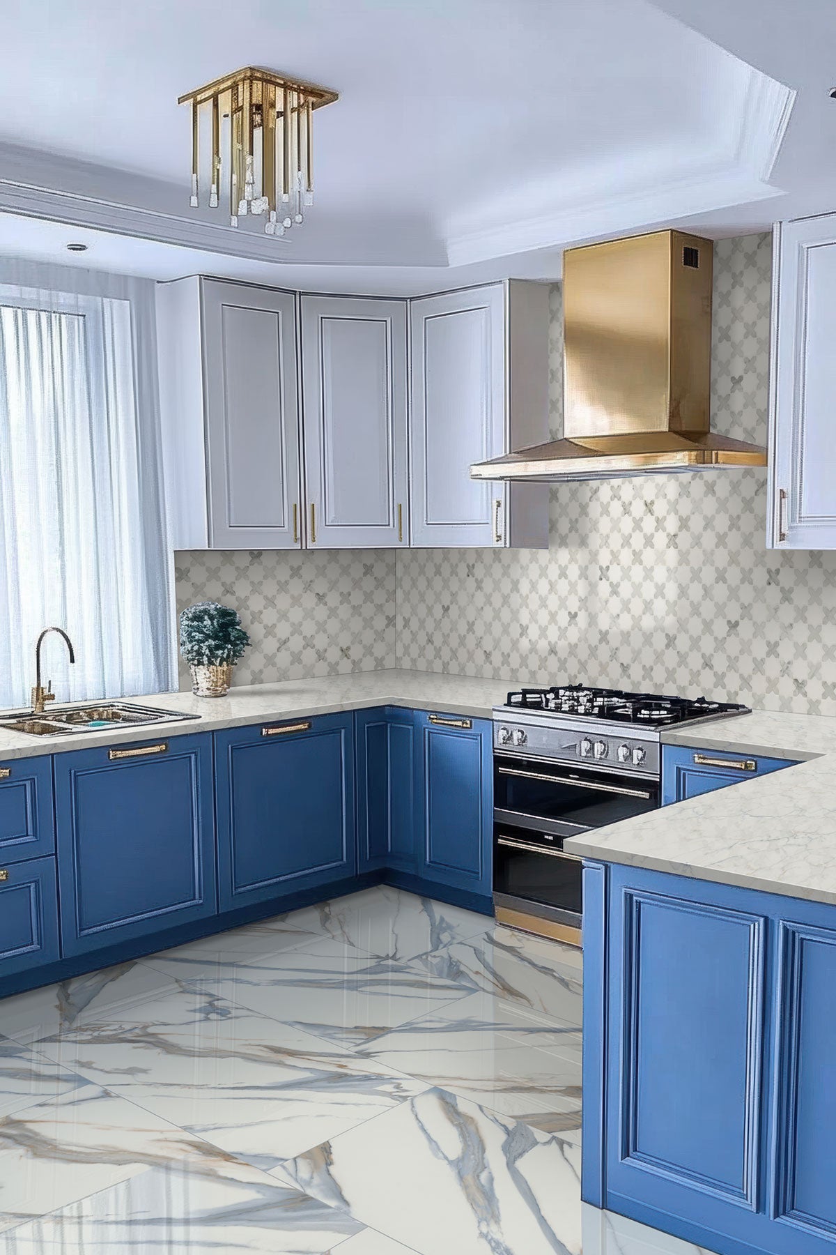 Add charm and detail to your space with Vera Anne Pattern Polished Tile. Featuring a white background with dove grey crosses in a fun checkered pattern, the neutral palette of this genuine marble tile works with nearly any color scheme. It’s an ideal choice for kitchen backsplash, fireplace façades, shower surrounds, bathroom vanity walls, and more. Not only stylish, but also durable and low maintenance, Vera Anne Pattern Polished Tile updates your space with the beauty of natural marble. Tiles are strategically arranged on mesh backed sheets for simplified installation and professional look.